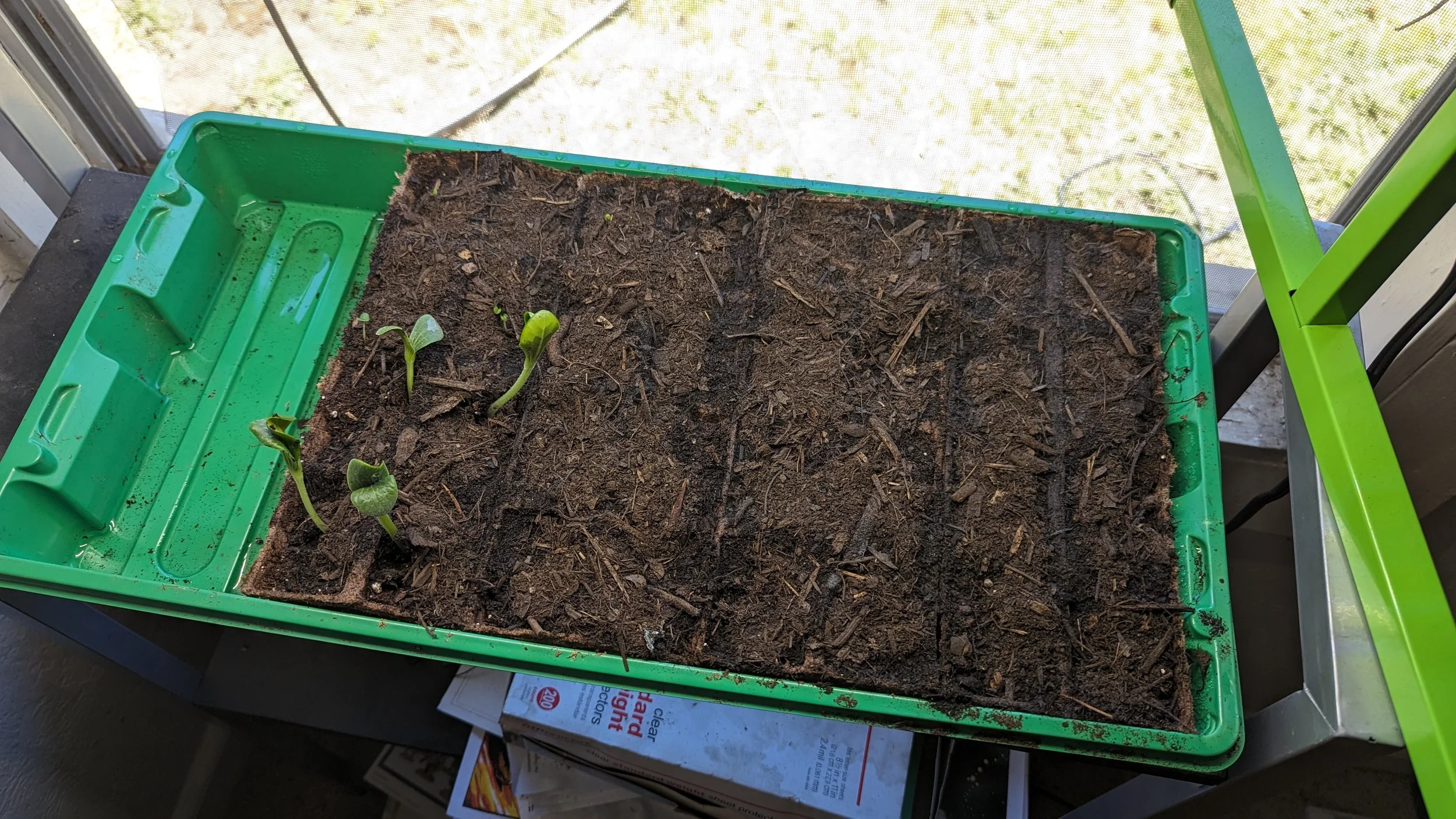 Hi there, I’m a Random NorCal Dude who is starting to take up gardening with a bit of a Tekkie side. The house that I’m renting came with a small 4x8x1 garden plot that needed some cleaning out at first. After I cleaned it out, I filled in the plot with some compost I got from the local garbage company. They take the green waste and grind it down into a usable soil. After some time, watering it to prep the soil for planting and to compact it down. For planting the plants, I tried to keep them relatively together by needs as it will be helpful later on. For example, the tomatoes are near the top of the picture as they will grow about the same and easier to stake and build a cage for them. Most of my seedlings from my first batch aren’t doing well from mold growth on top of soil due to the set up I had.